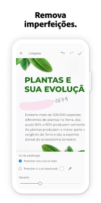 Refine e organize suas digitalizações com ferramentas intuitivas. O Adobe Scan oferece opções para cortar, girar, redimensionar e ajustar cores, além de um recurso de limpeza inteligente que remove manchas e vincos, garantindo uma apresentação profissional. Mantenha sua vida digital em ordem, criando pastas personalizadas e usufruindo da detecção automática de informações de contato em cartões de visita, salvando-as diretamente em seus contatos. Todas as suas digitalizações são sincronizadas automaticamente com a Adobe Cloud, proporcionando acesso e compartilhamento seguros em qualquer lugar. Para um fluxo de trabalho ainda mais integrado, aproveite a sincronização contínua com o Acrobat Reader e outras ferramentas Adobe.