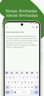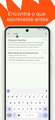 A experiência de uso é elevada pela sua simplicidade e inteligência. Tudo o que escreve é automaticamente preservado, eliminando preocupações com perdas acidentais. Desfrute da liberdade de notas ilimitadas e da capacidade de localizar rapidamente qualquer registo antigo através de uma funcionalidade de pesquisa intuitiva. Além disso, a partilha de suas anotações é simplificada, permitindo enviá-las para contactos ou guardá-las em serviços como Google Drive e Dropbox com apenas alguns toques, conectando suas ideias ao seu ecossistema digital.