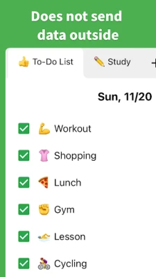 Transforme a maneira como você gerencia sua vida com a versatilidade das abas personalizáveis, dedicadas ao trabalho, hobbies ou assuntos pessoais, onde cada categoria pode abrigar notas importantes para capturar ideias no momento em que surgem. Mantenha-se no caminho certo com notificações personalizadas, pensadas para oferecer lembretes e aquela dose extra de motivação no exato instante em que você precisa. Sua privacidade e segurança são inegociáveis: Daily Checklist oferece proteção robusta com autenticação biométrica (Face ID e Touch ID) e a garantia de que seus dados permanecem exclusivamente no seu dispositivo, longe de servidores externos. Adicione um toque de alegria às suas listas com emojis e desfrute de uma leitura confortável a qualquer hora com o modo escuro.