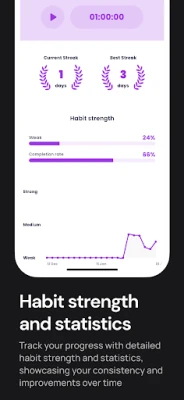 Com Disciplined, a personalização está ao seu alcance. Desenvolva rotinas específicas para qualquer meta – seja um regime de exercícios, a leitura diária de um livro ou momentos de meditação. Acompanhe sua evolução de forma intuitiva, observando suas sequências de sucesso crescerem através de visualizações gráficas que servem como uma fonte constante de inspiração. Nunca perca o ritmo com lembretes inteligentes e totalmente adaptáveis, garantindo que cada passo na construção do seu hábito seja honrado e mantido. E para um ajuste fino, explore as estatísticas detalhadas que revelam padrões e oferecem insights valiosos para otimizar seu desempenho.