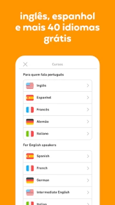 Descubra um universo de novas possibilidades linguísticas com o Duolingo, a plataforma que transforma o aprendizado de idiomas numa aventura envolvente e eficaz. Desenvolvido por especialistas em linguística e amado por milhões globalmente, Duolingo prepara você para se comunicar com fluência em uma vasta gama de idiomas, incluindo espanhol, francês, chinês, italiano, alemão, inglês, japonês, coreano e muitos outros. Seja para suas próximas viagens, para aprimorar sua carreira, conectar-se com entes queridos ou simplesmente exercitar a mente, Duolingo oferece uma jornada de aprendizado que você vai adorar.