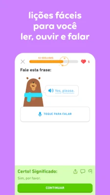 Com o Duolingo, aprender é sinônimo de diversão. Nossas lições são cuidadosamente elaboradas para parecerem jogos cativantes, apresentando personagens vibrantes que guiam você através de desafios que aprimoram suas habilidades de leitura, escrita, escuta e fala de forma integrada. A metodologia de ensino do Duolingo é fundamentada em pesquisas científicas comprovadas, garantindo que o conhecimento adquirido seja retido na memória de longo prazo. Acompanhe seu progresso sem esforço, celebre cada conquista e construa um hábito diário de estudo que se torna uma parte gratificante da sua rotina.