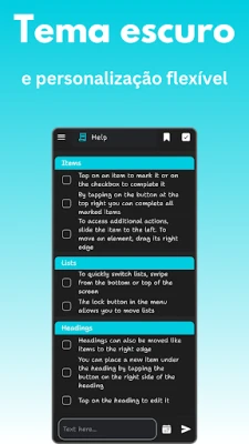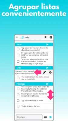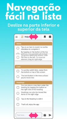 A interação com suas listas é fluida e poderosa. Mova itens com precisão arrastando a borda direita ou acesse opções avançadas como edição e realocação com um simples deslize para a esquerda. Crie títulos personalizados para categorizar e organize novos itens diretamente abaixo deles com um toque, facilitando a construção de uma estrutura lógica. A navegação entre suas múltiplas listas é intuitiva, seja através do menu principal ou com gestos na parte inferior e superior da tela. Gerencie suas coleções de listas facilmente, reordenando-as ou personalizando cada uma com ícones e cores exclusivas, garantindo que sua organização seja tão única quanto você. Esta ferramenta é construída para se adaptar ao seu ritmo, proporcionando uma experiência otimizada para todas as suas necessidades.