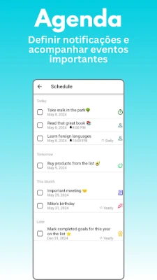 Na agitação do dia a dia, manter a clareza e a organização é essencial. Este aplicativo é o seu novo assistente pessoal, projetado para transformar a maneira como você gerencia seus compromissos e tarefas. Com uma visão abrangente de todos os seus projetos e atividades programadas, você nunca mais se sentirá sobrecarregado. Desde o planejamento de eventos importantes até a administração de afazeres diários, a ferramenta oferece uma estrutura intuitiva para que cada meta seja não apenas registrada, mas ativamente perseguida. Tenha total controle sobre sua agenda e liberte sua mente para o que realmente importa.