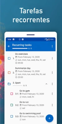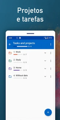 O poder da organização reside nos detalhes. My Daily Planner permite desmembrar tarefas complexas em subtarefas gerenciáveis, eliminando a confusão e facilitando o início de qualquer projeto. Agrupe suas responsabilidades em pastas personalizadas – seja para trabalho, estudos ou vida pessoal – garantindo que nada se perca de vista. Edite, mova e categorize suas atividades com cores distintas ou adicione novas tarefas por voz para máxima agilidade. E com o cálculo automático de progresso, você acompanha sua evolução, enquanto tarefas não concluídas são inteligentemente movidas para o dia seguinte, mantendo seu foco sempre à frente.
