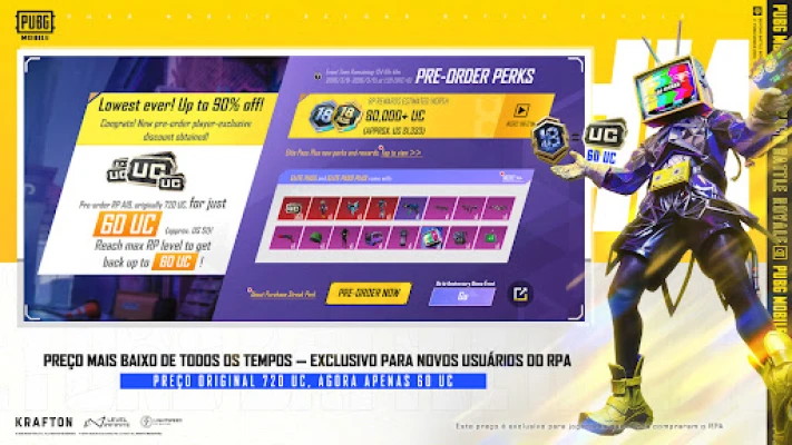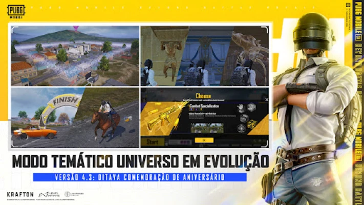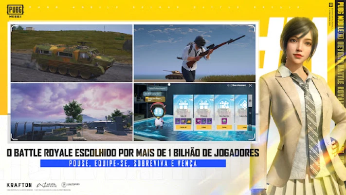 PUBG MOBILE é a obra-prima épica do Battle Royale original no celular, um dos melhores jogos de tiro. Explore eventos, mapas e modos emocionantes. Desfrute de batalhas extremas de 10 minutos e uma jogabilidade suave, respondendo ao chamado da batalha onde e quando quiser.