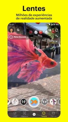 Imagine um universo onde a comunicação visual ganha vida ao toque de um botão. O Snapchat coloca a sua câmara no centro da experiência, permitindo que capture momentos instantaneamente com uma simples foto ou um vídeo mais longo. Liberte a sua criatividade com uma vasta gama de Lentes dinâmicas, Filtros exclusivos e o seu Bitmoji personalizado, transformando cada Snap numa obra de arte única. Descubra e explore Lentes inovadoras, atualizadas diariamente pela vibrante comunidade do Snapchat, garantindo que a sua expressão nunca se esgota. É a forma mais divertida e autêntica de partilhar o que está a fazer, agora.