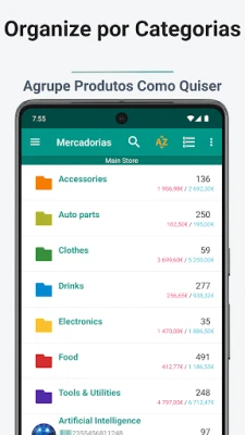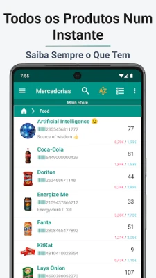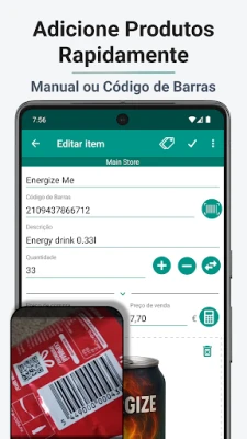 A introdução de dados nunca foi tão simples: adicione itens manualmente ou importe diretamente de folhas de cálculo Excel. Enriqueça o seu catálogo com imagens, tirando fotos no momento ou adicionando-as da sua galeria, para uma visualização clara dos seus produtos. Mantenha tudo arrumado e acessível, organizando os seus artigos em pastas e grupos com uma hierarquia ilimitada. Para uma eficiência máxima, utilize a leitura de códigos de barras – seja com a câmara do seu smartphone ou com um leitor externo – agilizando processos como vendas, compras e inventários.