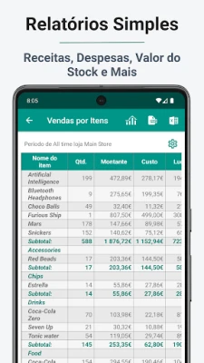 Vá além do básico com funcionalidades robustas para o seu negócio. Registe detalhadamente vendas e compras, acompanhe a atividade de clientes e fornecedores, e gerencie simultaneamente várias lojas. Nunca mais seja apanhado de surpresa com o stock baixo: defina níveis mínimos e receba notificações atempadas para fazer novas encomendas. Elabore relatórios abrangentes, calcule lucros, margens e markups, e analise vendas diárias ou por item e cliente. Para comunicação profissional, imprima documentos como catálogos, tabelas de preços, recibos ou faturas, utilizando os nossos modelos pré-definidos ou criando os seus próprios layouts personalizados em PDF. Mantenha os seus dados seguros e acessíveis, com funcionalidades de importação/exportação Excel e a conveniente troca de dados e cópias de segurança via Google Drive.