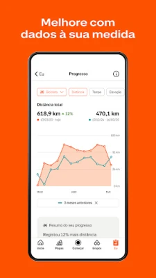 No Strava, o movimento é uma celebração coletiva. Conecte-se com uma comunidade global de atletas que partilham a sua paixão e encontre a motivação que precisa. Participe em desafios mensais cativantes, junte-se a milhões de utilizadores para alcançar novos patamares, conquiste medalhas digitais e mantenha a sua ambição em alta. Transforme os seus treinos em progresso visível com o seu Registo de treino detalhado, que oferece uma visão aprofundada do seu desempenho. Analise métricas específicas, identifique áreas de melhoria e otimize a sua estratégia. O seu feed vibrante exibe atividades genuínas de outros desportistas, criando um ambiente inspirador e de apoio mútuo.