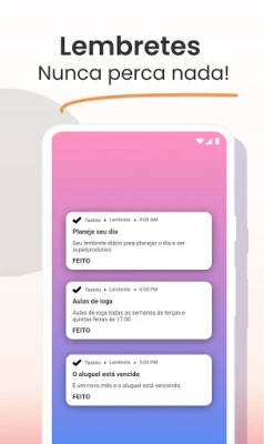 No núcleo de **Taskito** reside uma interface dinâmica que integra tudo em um só lugar. A visualização da linha do tempo oferece um panorama completo de suas tarefas, anotações, eventos e lembretes, simplificando a sua jornada diária. Um calendário de fácil acesso, com indicadores visuais de dias ocupados ou atrasados, mantém você informado. Gerencie compromissos cotidianos através do Modo Dia ou orquestre iniciativas maiores com o versátil Quadro Kanban. Defina lembretes precisos – diários, semanais ou mensais – com notificações personalizáveis em tela cheia, incluindo funcionalidades de soneca e reagendamento. E para garantir que sua organização nunca falhe, **Taskito** sincroniza instantaneamente todas as suas atividades em diversos dispositivos Android.